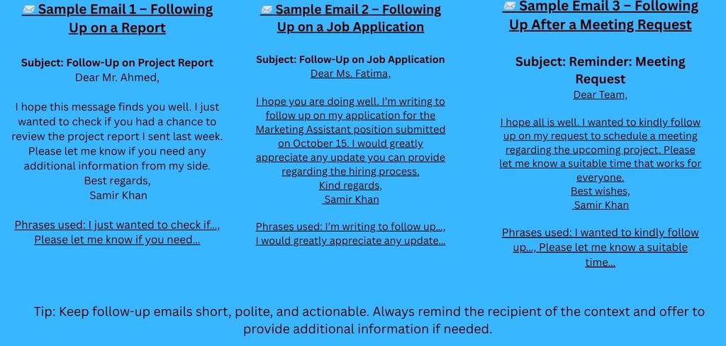 Following up on emails is an important part of professional communication. Done correctly, it shows initiative and responsibility. Done incorrectly, it can seem pushy or impatient. The key is to stay polite, concise, and clear. Here are some sample emails to show how it’s done.