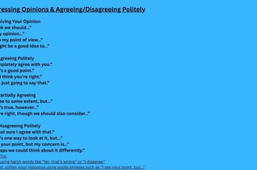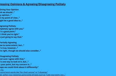 Expressing Opinions & Agreeing/Disagreeing Politely